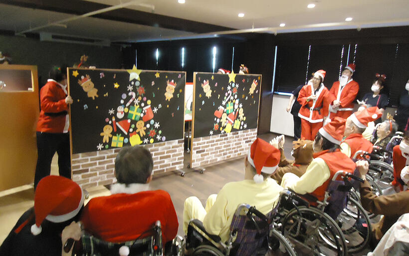 職員スタッフ、患者さまともに、サンタクロースやトナカイに扮して、唄や踊りをし、楽しんでいます。